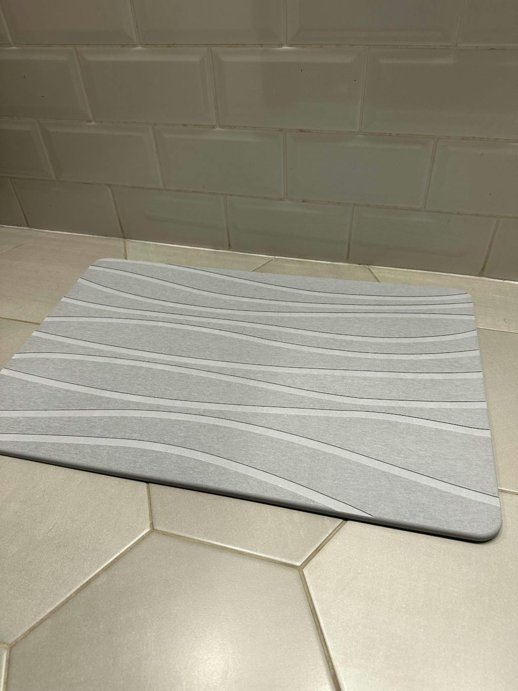 Ich liebe diese Stein-Badematte! Sie trocknet super schnell und hält das Badezimmer trocken! Ich habe noch mehr für mein anderes Badezimmer gekauft und eine unter den Wassernapf meines Hundes gelegt!