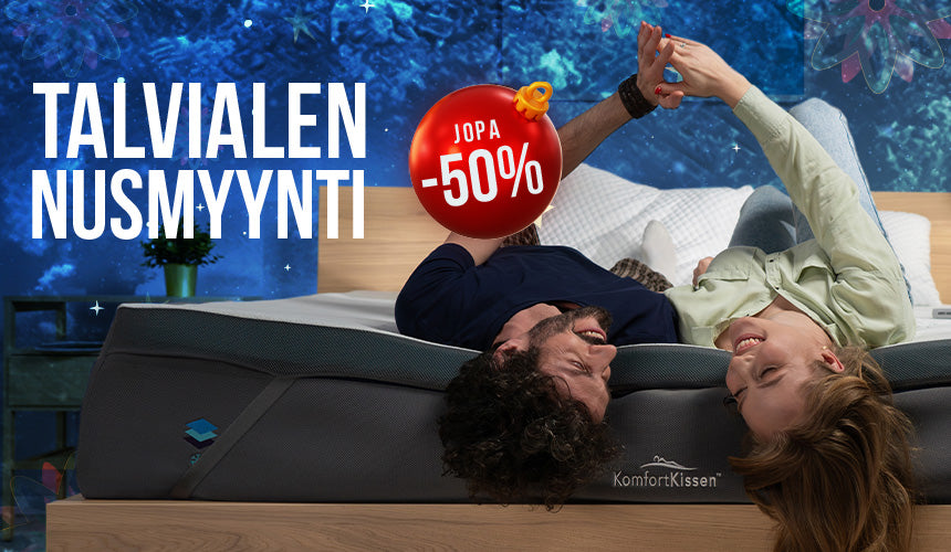 Tutustu suureen syntymäpäivämyyntiimme 2026: laadukkaita nukkumistuotteita nyt jopa 50 % alennuksella. Olipa kyseessä tyynyt, petauspatjat tai patjat – saat suosituimpia tuotteitamme nyt ainutlaatuisilla syntymäpäivätarjouksilla. Saatavilla vain rajoitetun ajan.