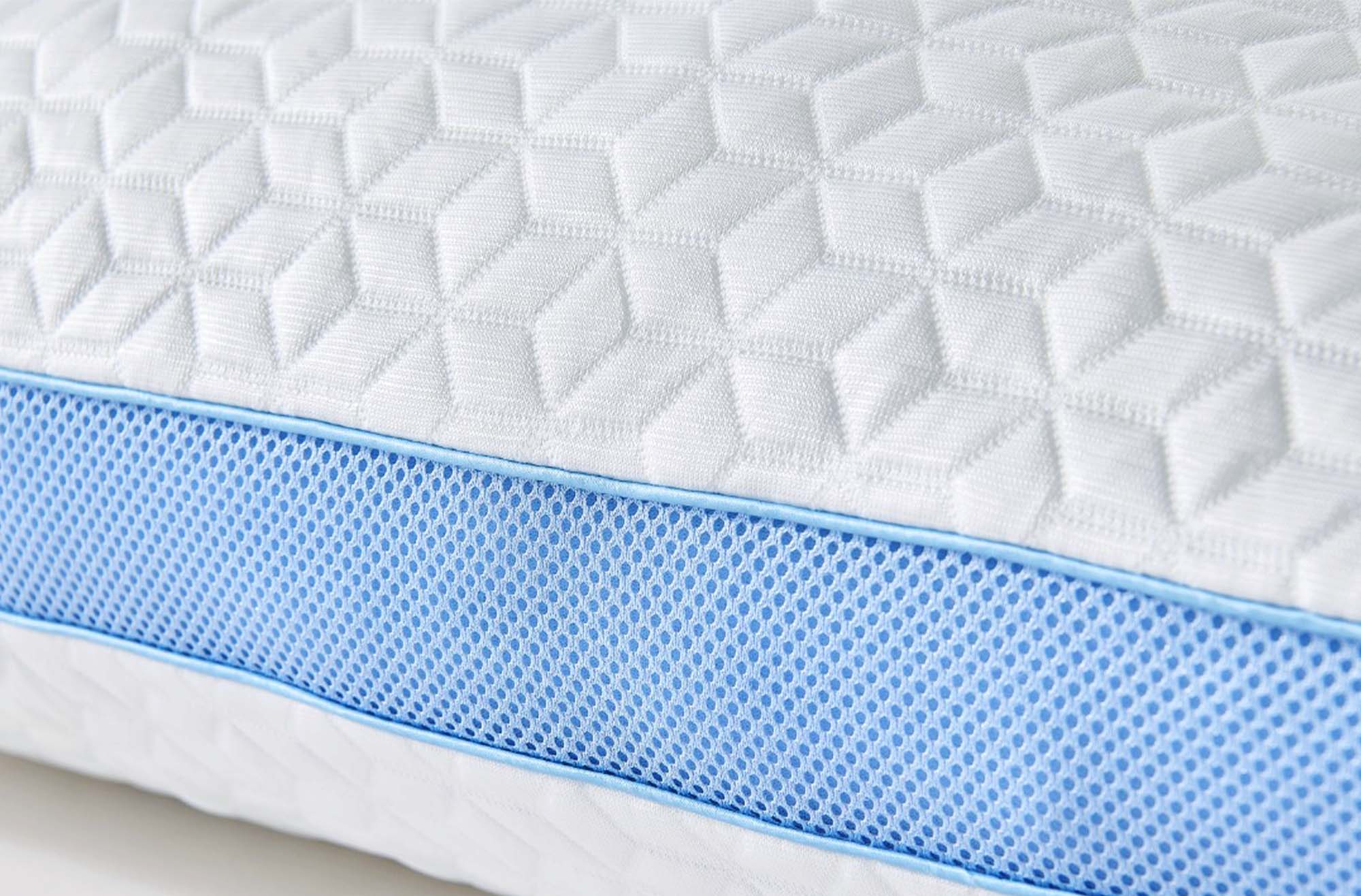 Wolkenkissen Air+ vereint luftdurchlässige Stoffe, anpassbaren zerkleinerten blauen Memory-Schaum und pflegeleichte Schichten für dauerhaften Komfort.