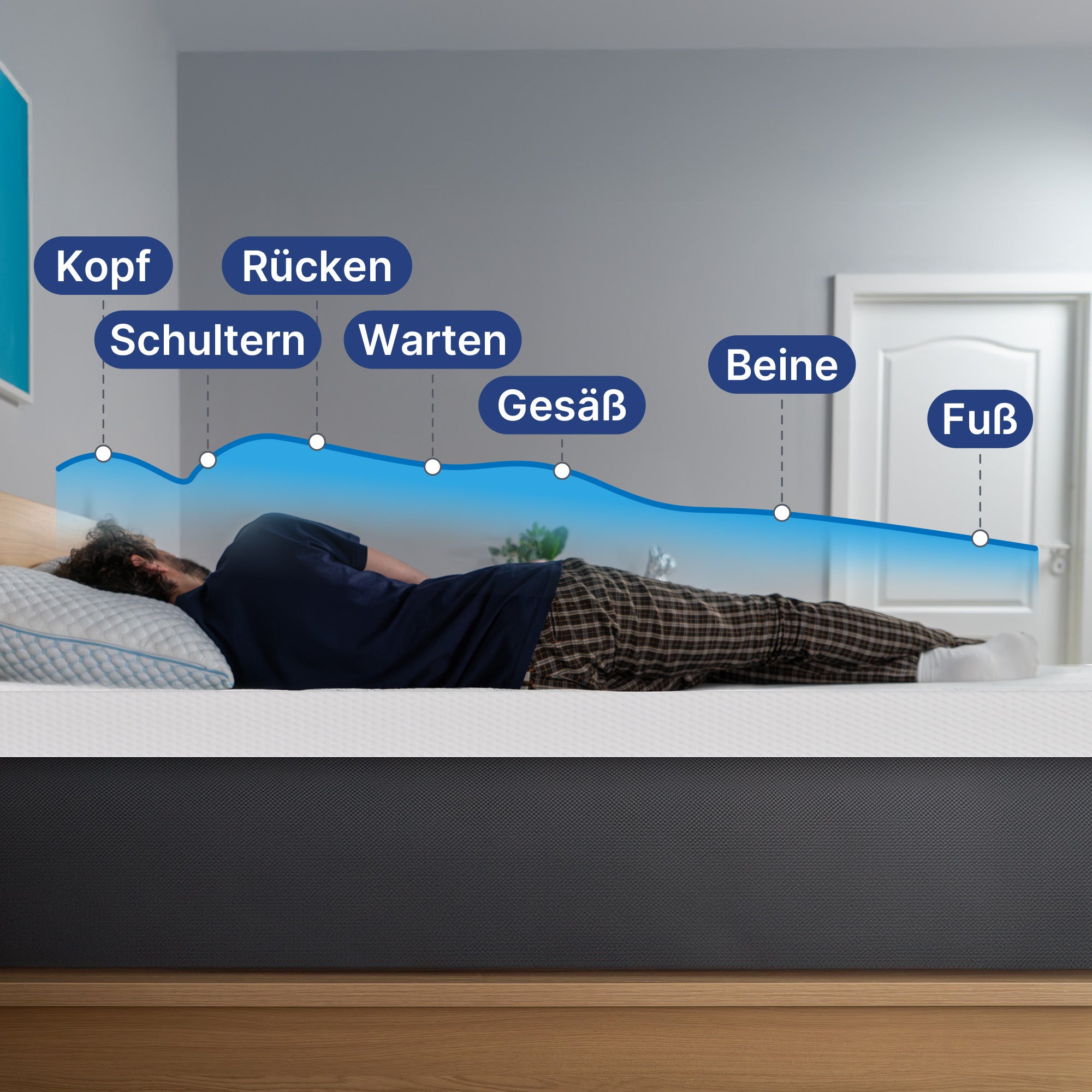 Körperkonturierender Memory-Schaum – sorgt für Druckentlastung und reguliert die Körpertemperatur.