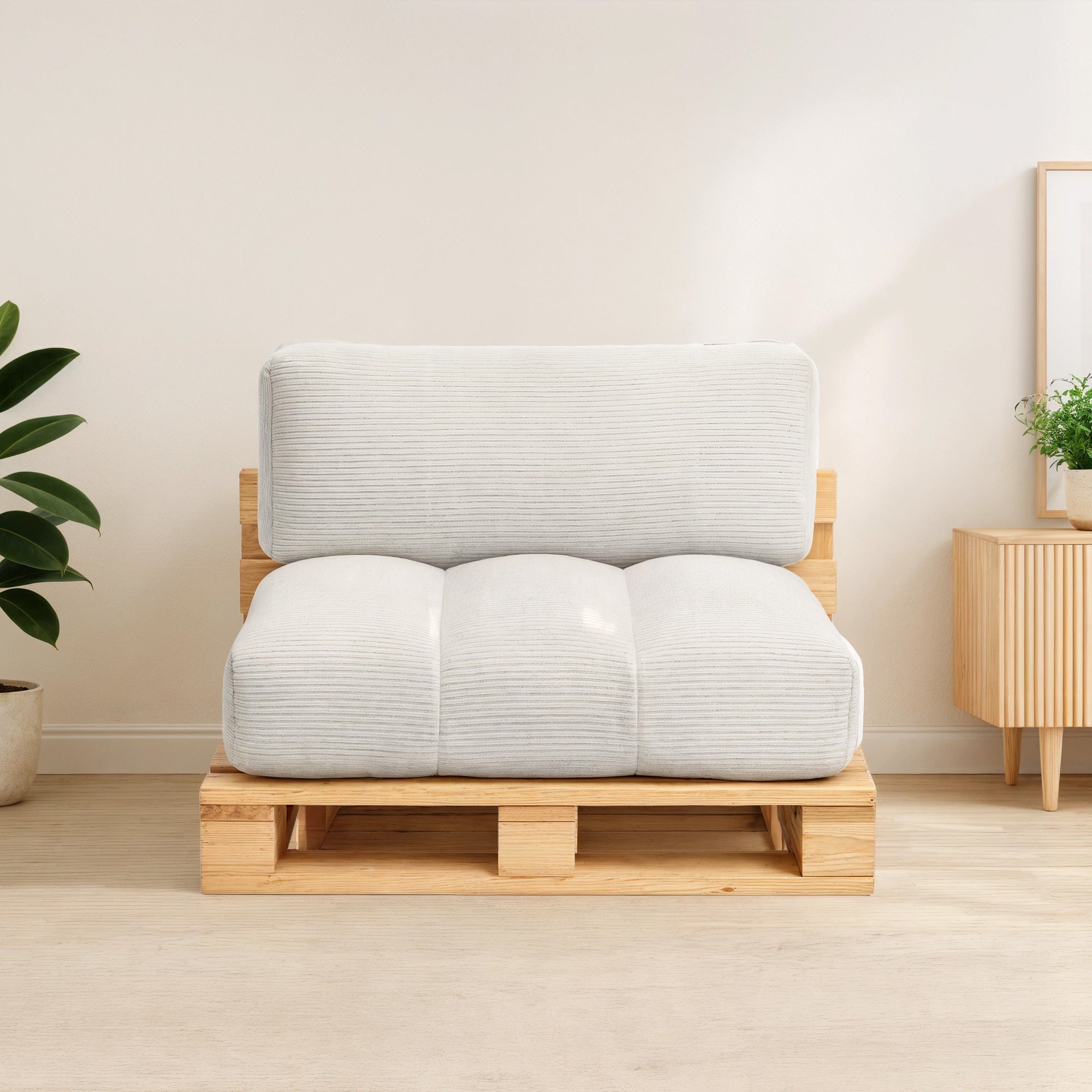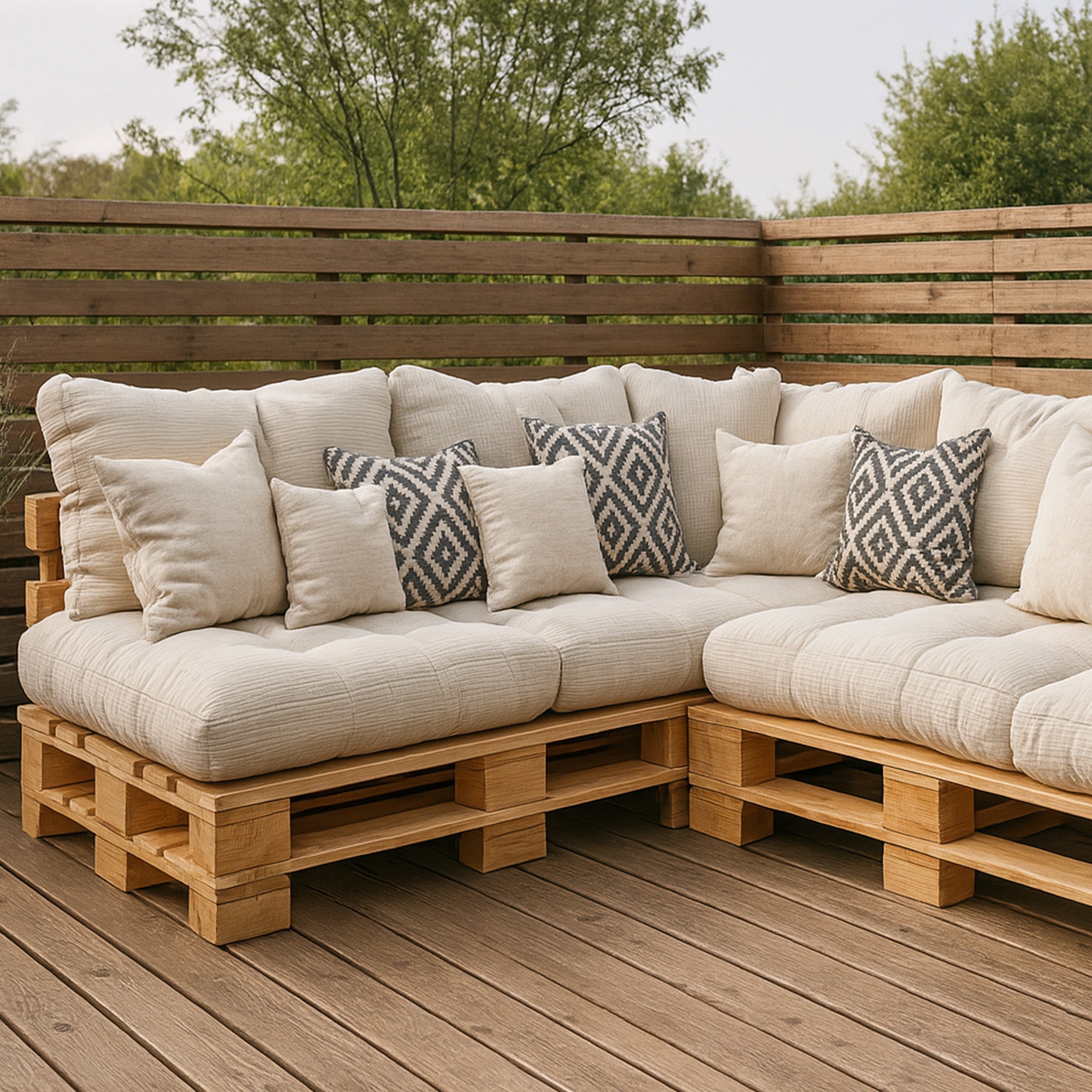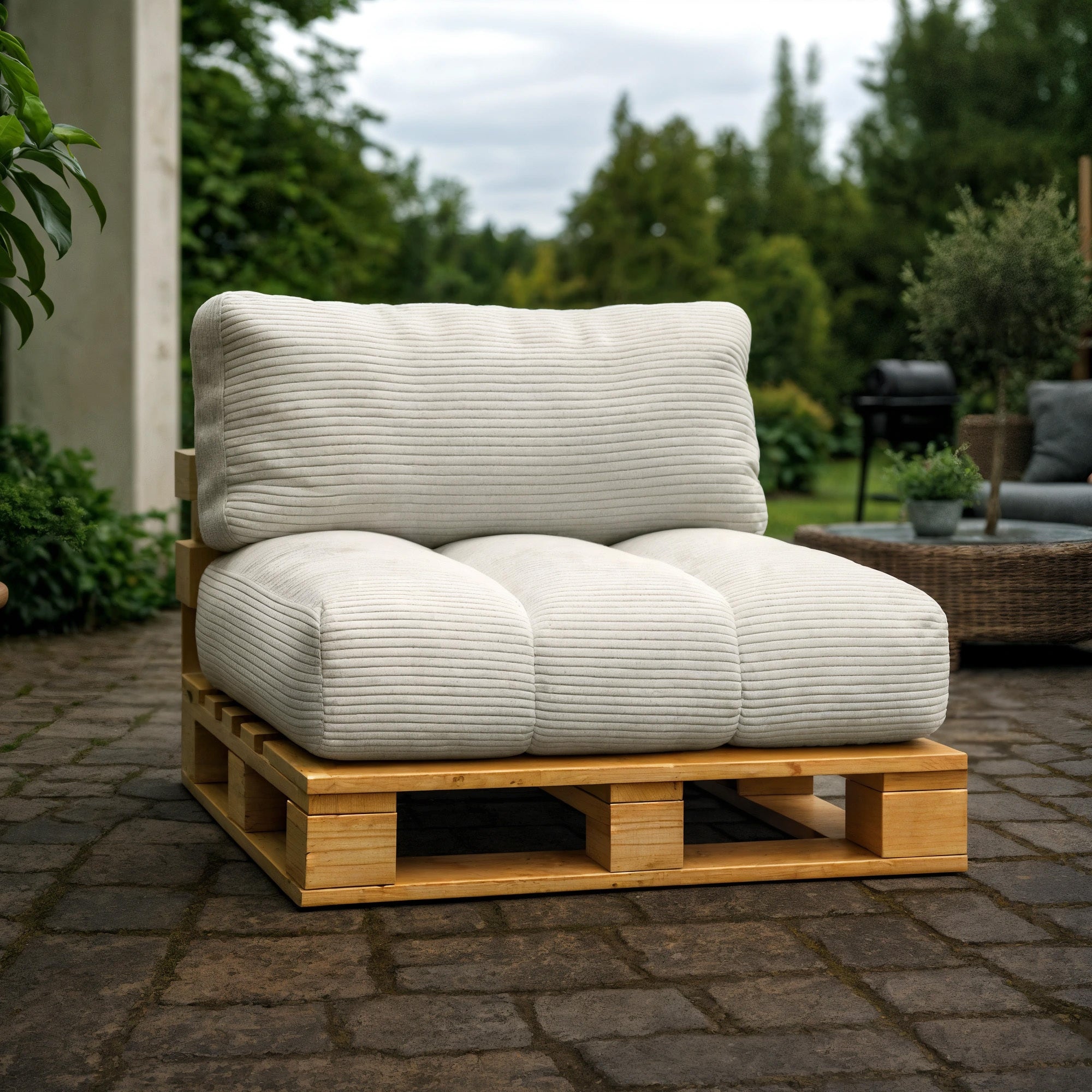 Il cuscino per pallet è disponibile in diverse varianti e dimensioni, compatibile con qualsiasi divano pallet. I cuscini sono di alta qualità e adatti sia per interni che per esterni.