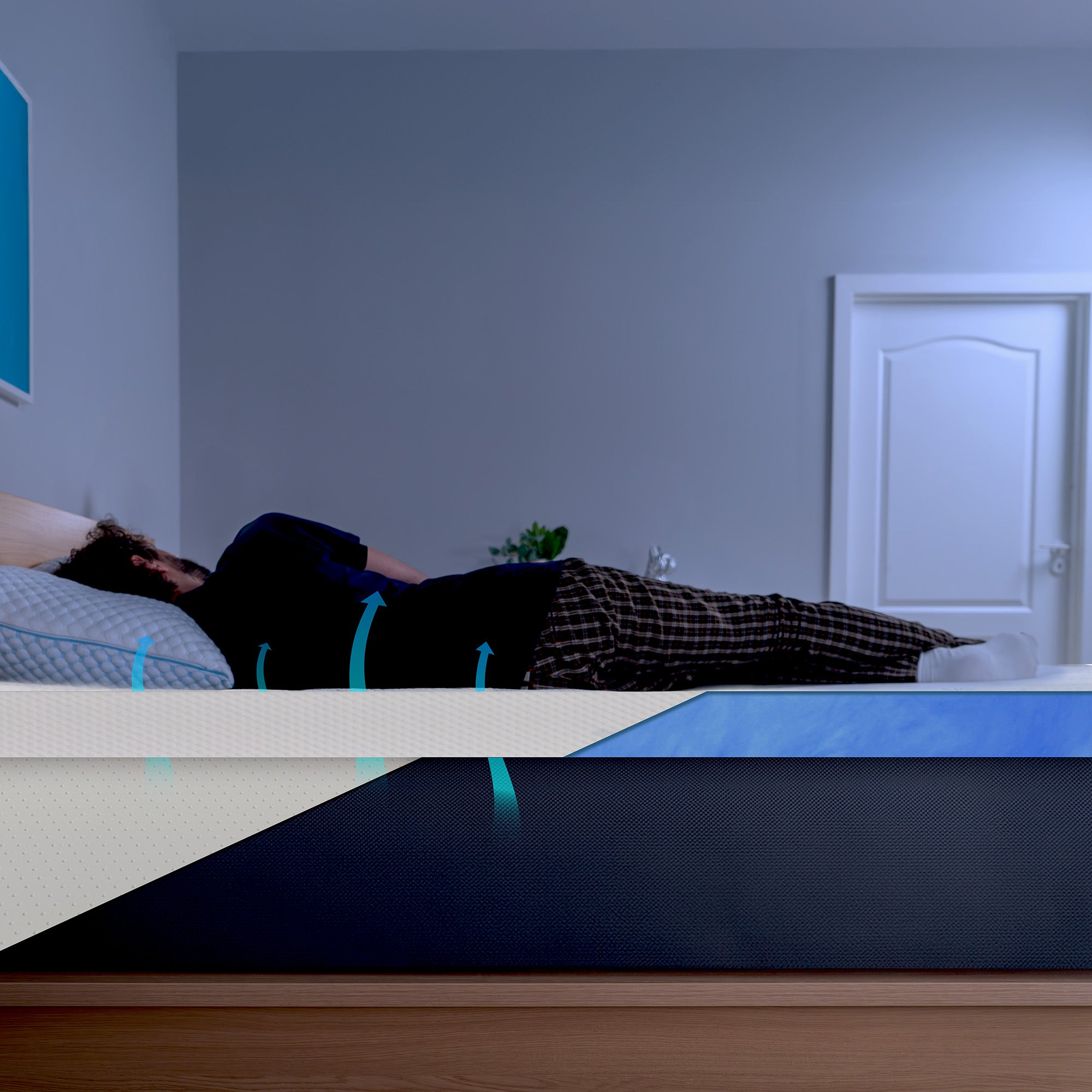 Lichaamscontourvormend memory-schuim – zorgt voor drukontlasting en reguleert de lichaamstemperatuur.