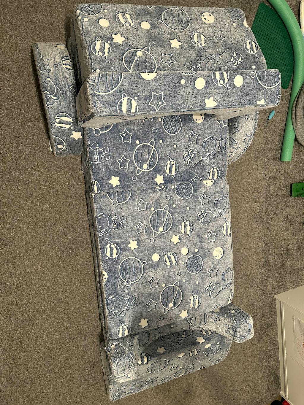 Das Sofa ist einfach toll. Genau das was wir für unseren Sohn gesucht haben ohne hunderte von Euro ausgeben zu müssen. Es war ein tolles Angebot. Auch das Muster ist sehr schön und leuchtet im dunklen. Es ist sehr zu empfehlen