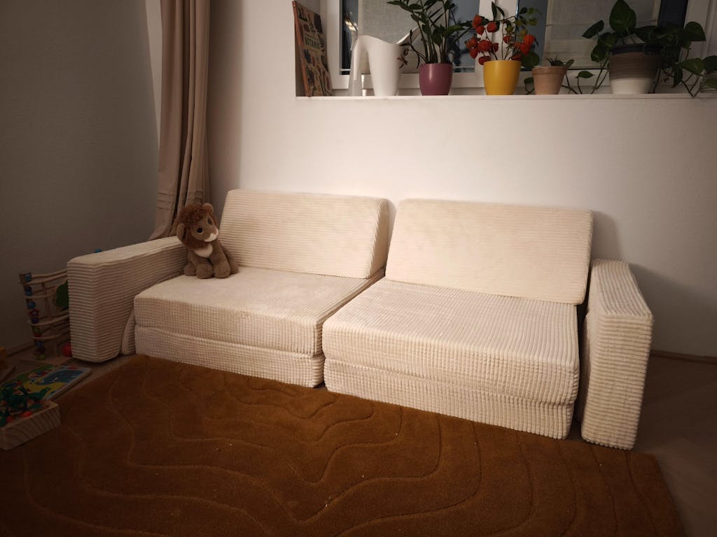 Wir dachten wir kaufen dieses Sofa für unseren 10-monatigen Sohn, es wird aber tatsächlich von allen genutzt. Groß und Klein, unsere Gäste setzen sich auch sehr gerne darauf. Als es angekommen ist, war ich aufgrund der Verpackung kurz verunsichert, nachdem wir es aber aus der luftdichten Verpackung rausgeholt haben und die Couch in ihre Form kam, war alles supi :) wir haben es noch nicht gewaschen, sollte mit den Zips aber kein Problem darstellen. Klare Kaufempfehlung! :)